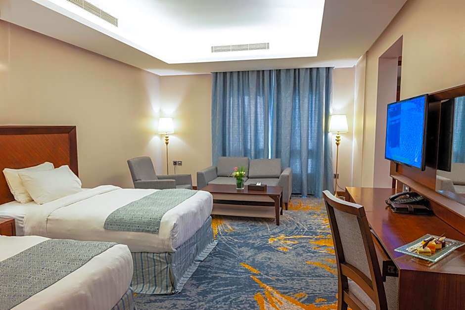 This spacious suite consists of 1 living room, 1 separate bedroom and 2 bathrooms with a walk-in shower and free toiletries. The air-conditioned suite provides a flat-screen TV with satellite channels, a mini-bar, a tea and coffee maker, a seating area as well as city views. The unit offers 1 bed.